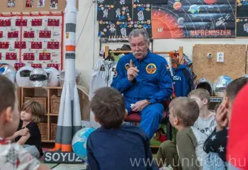 Farkas Bertalan segítségével tökéletesítették hetek óta készülő űrutazási projektjüket a Debreceni Egyetem hajdúböszörményi óvodásai. A gyerekek szerdán látták vendégül a Magyar Szent István-renddel kitüntetett vadászpilótát, akinek nevét mostantól már biztosan nemcsak egy kisbolygó őrzi, hanem a legkisebbek sem felejtik el soha.